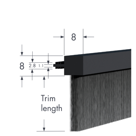 Den flexibla borstlisten med Clip-In-profil F är tillverkad av högkvalitativa, UV-beständiga polypropylenfilament och en flexibel kärna av termoplast. Tack vare sin 100 % syntetiska konstruktion är listen helt rostfri och lämplig för både inomhus- och utomhusbruk.