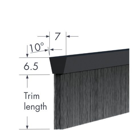 En trapezformad borstlist som är utformad för specialiserade tät- och rengöringsapplikationer. Den vinklade profilen säkerställer optimal kontakt och prestanda på lutande eller oregelbundna ytor.