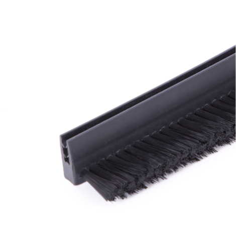 A flat-profile brush strip with clip-on functionality, designed for quick and secure mounting on edges or panels. Suitable for sealing, cleaning, or guiding in various industrial setups.