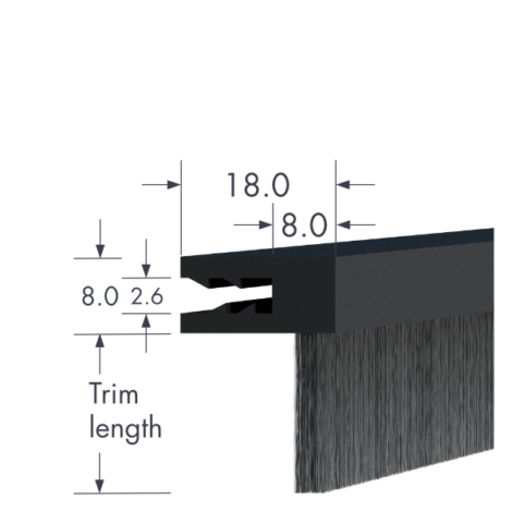 Den flexibla borstlisten med Clip-On-profil F är tillverkad av högkvalitativa, UV-beständiga polypropylenfilament och en flexibel kärna av termoplast. Tack vare sin 100 % syntetiska konstruktion är listen helt rostfri och lämplig för både inomhus- och utomhusbruk.